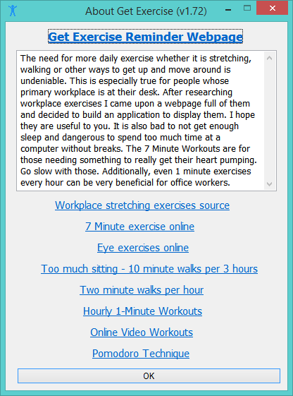 Version 1.74 of Get Exercise is now available with an all new Exercise Dashboard, Stretching timers, 1-Minute exercise timer and Pomodoro Work/Break timers.